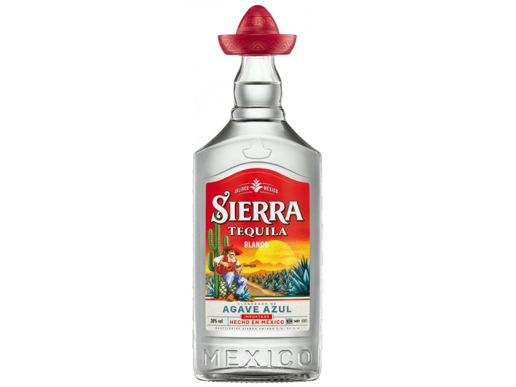 Číra, tzv. "biela" Tequila s obsahom alkoholu 38%. Tequila Sierra Blanco je vyrobená z modrého agáve a vyznačuje sa čistou, sviežou chuťou s tónmi agáve a citrusov. Ideálna na shoty so soľou a limetkou alebo do koktailov. Sierra Tequila – chuť Mexika.
